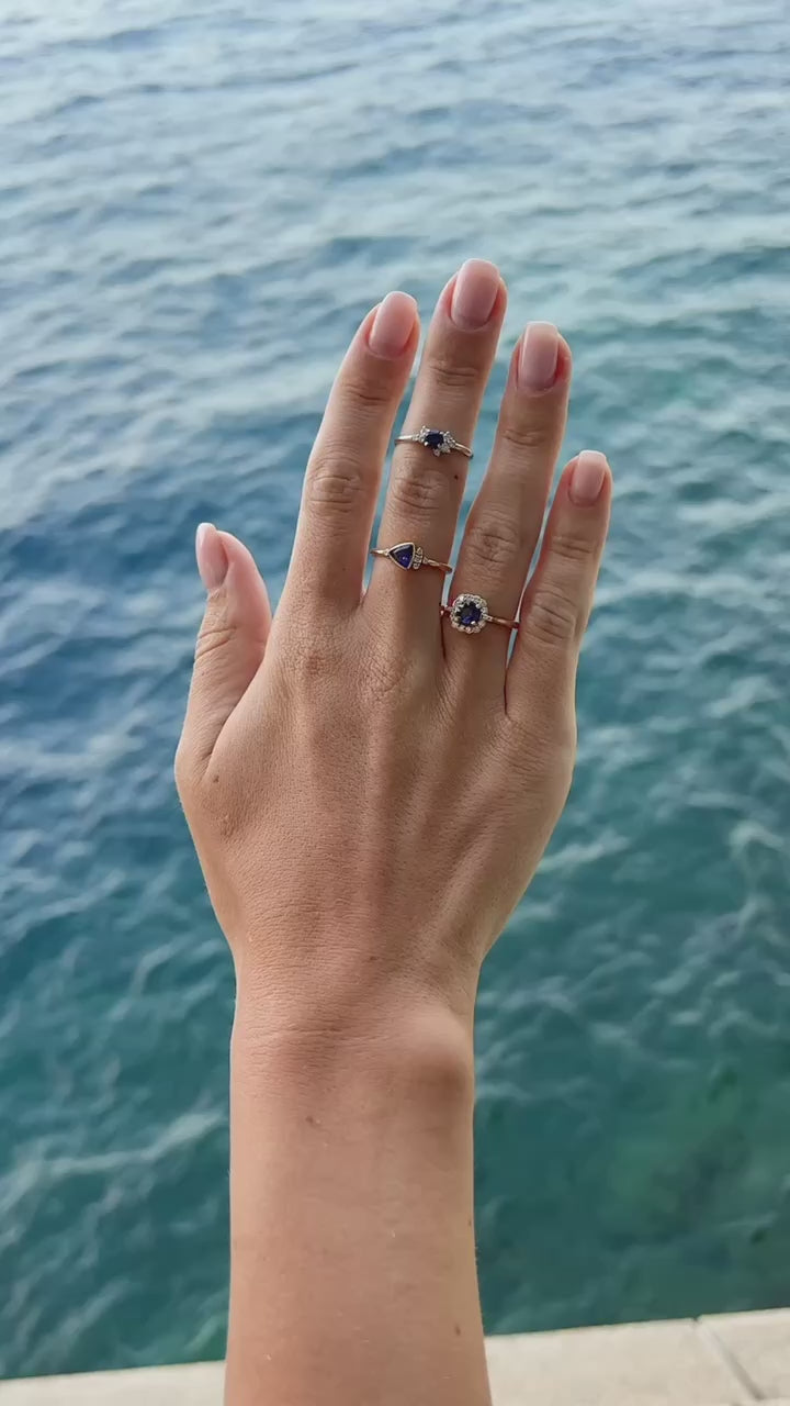 This beautiful ring features a stunning bezel set trillion cut tanzanite in 14K yellow gold with natural diamond accents. This ring makes for a stunning accessory to any look!