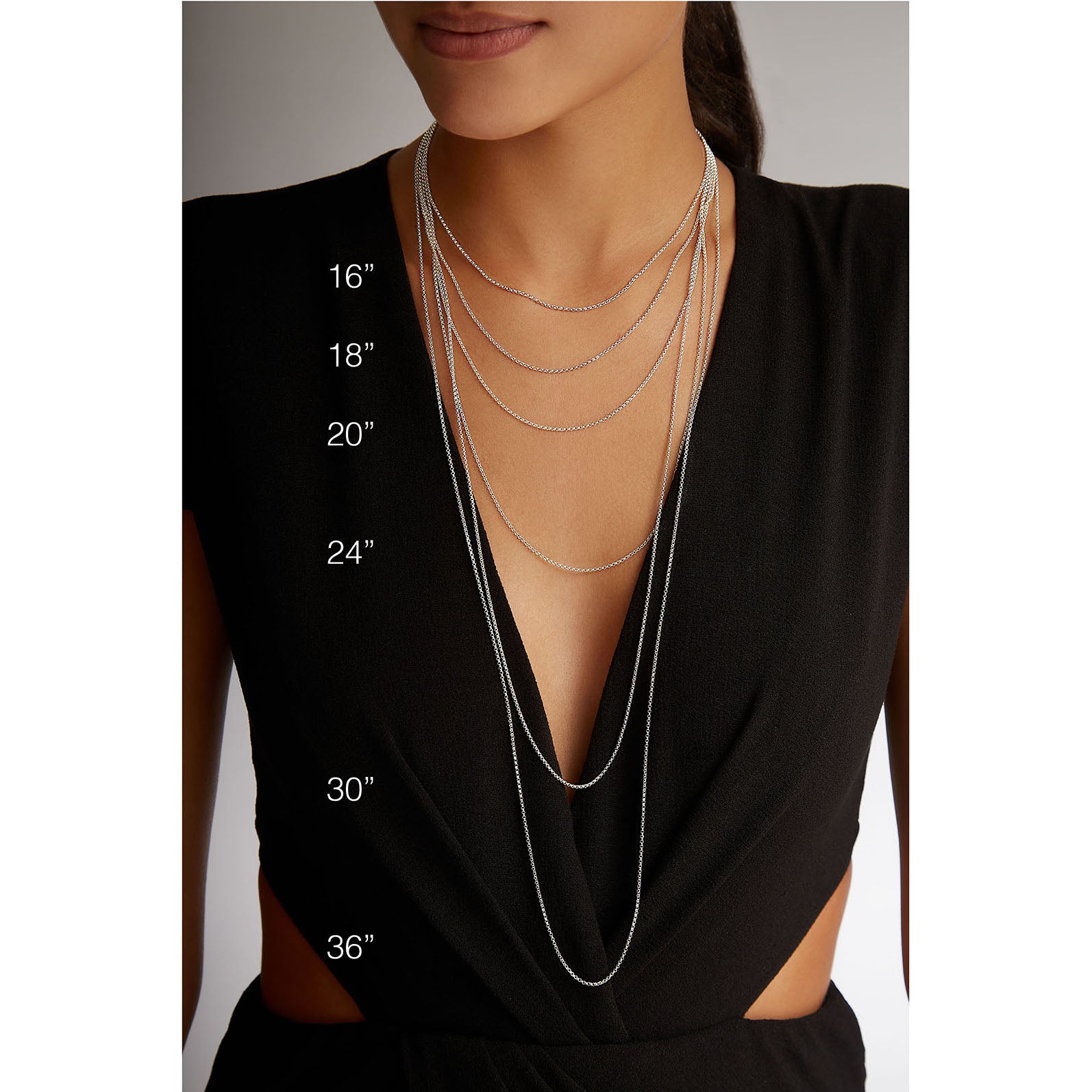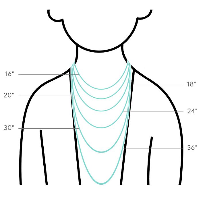 Necklaces vary by chain length. The circumference of your neck and size of the pendant will impact how your necklace sits on its own and with other styles.